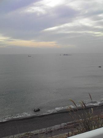 時間帯なのか、波が立っていない、湖水のような相模湾。しかし、今の携帯は素晴ら