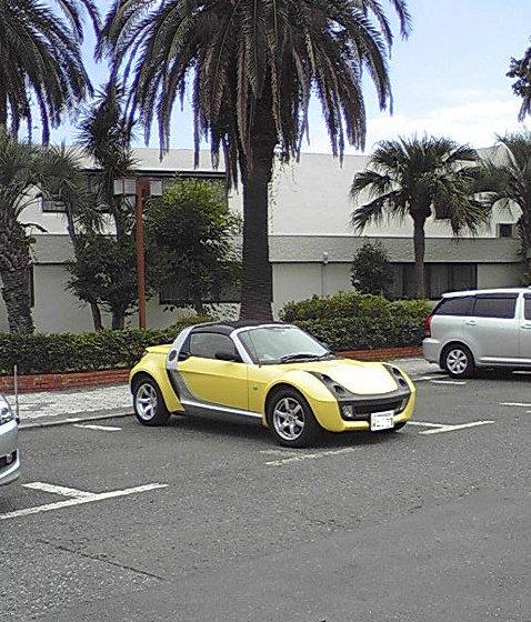 駐車場で存在感を示している、スマロー。慣れたせいか、2分ほどでオープンに出来た。
